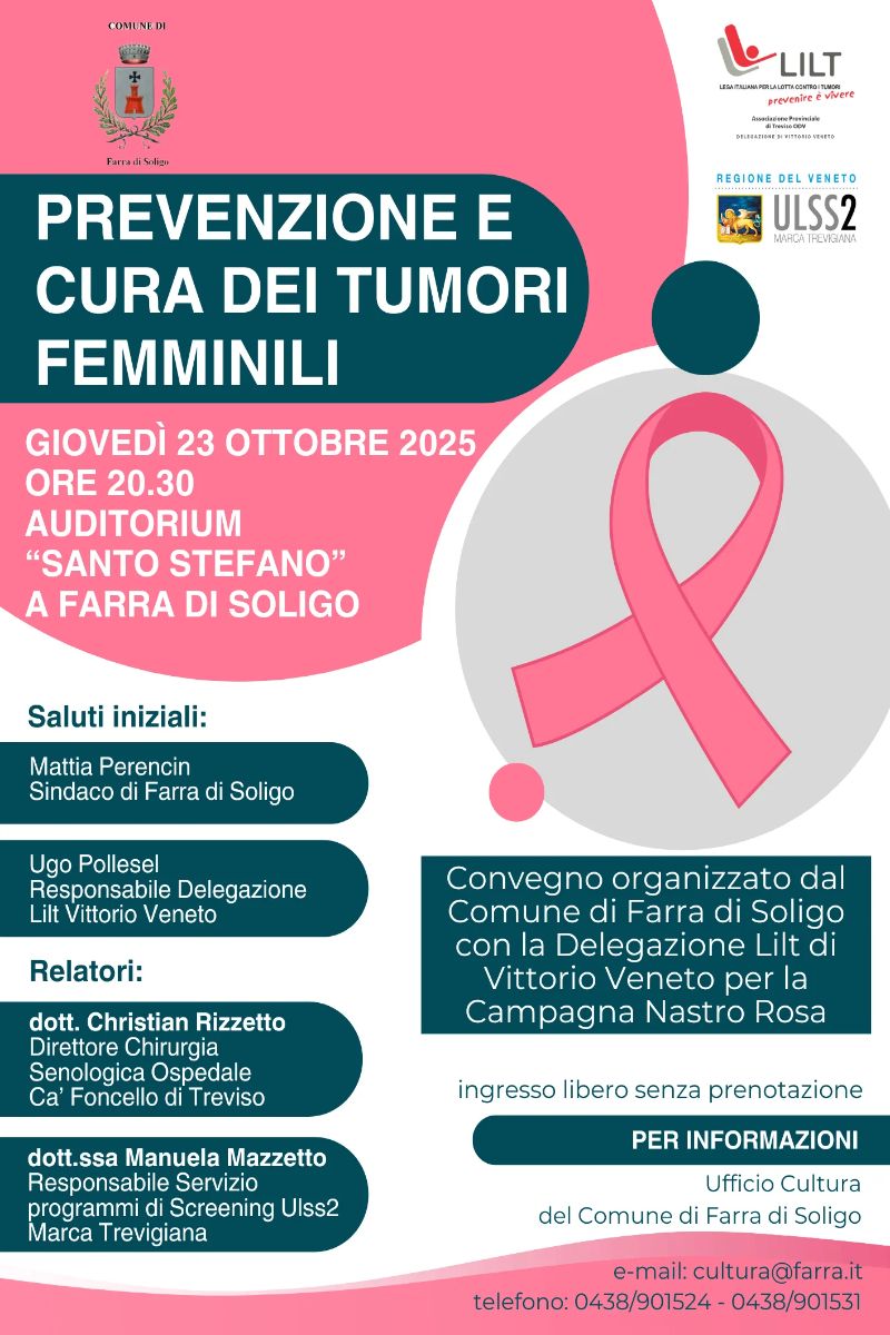 Convegno organizzato dal Comune di Farra di Soligo con la Delegazione Lilt di Vittorio Veneto per la Campagna Nastro Rosa.