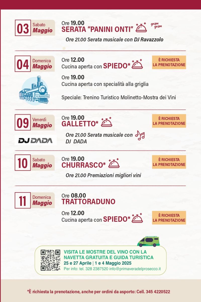 Per info: tel. 328 2387520 o info@primaveradelprosecco.it