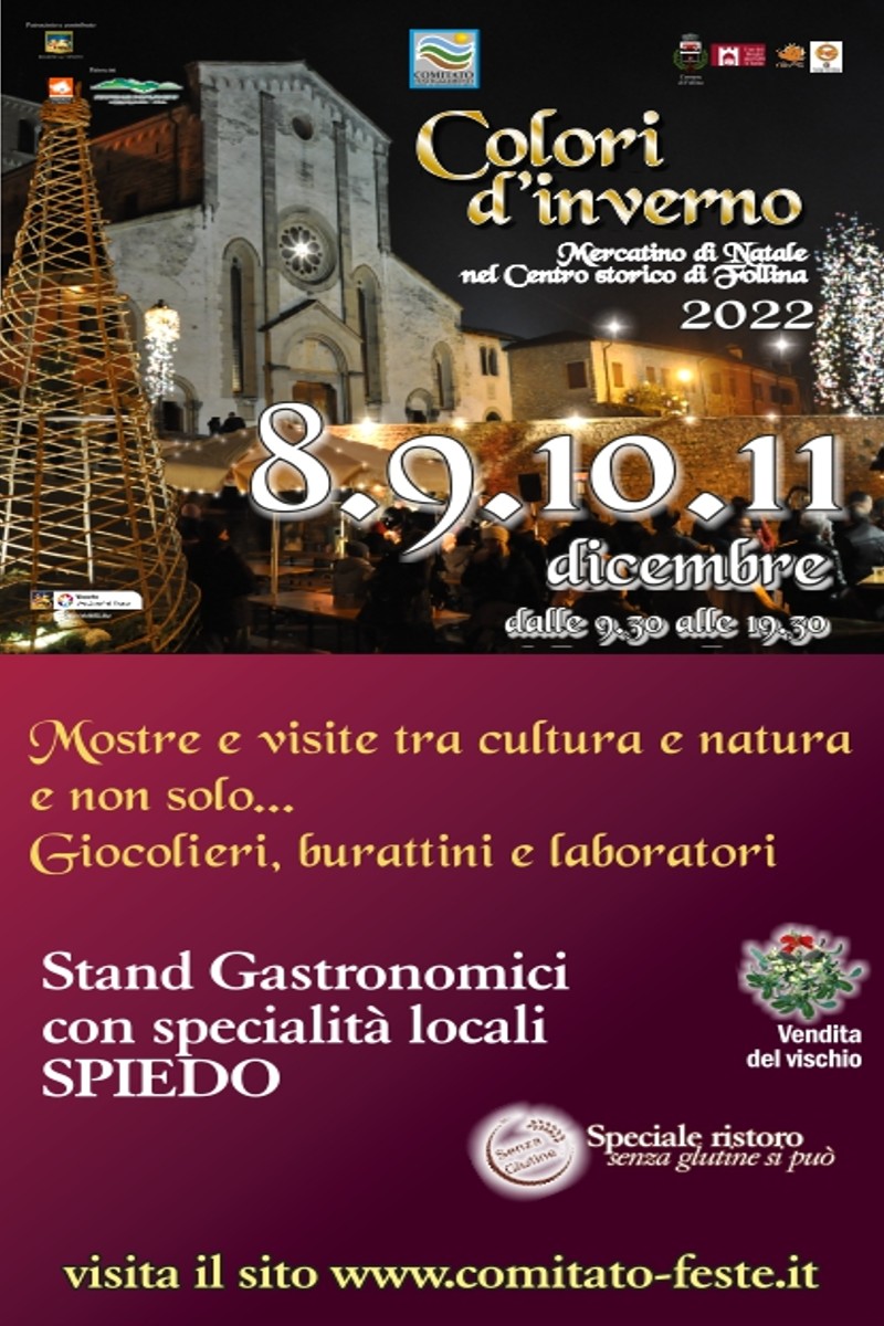 Nei giorni 8-9-10-11 Dicembre, in occasione della XVIII edizione del mercatino di Natale “Colori d'Inverno”, ogni angolo e via del centro storico si vestiranno di colori, profumi e calde luci natalizie, artigiani e hobbisti accuratamente selezionati proporranno le loro creazioni.