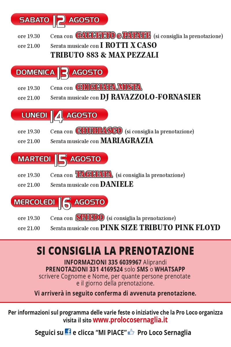 Per informazioni sul programma delle varie feste o iniziative che la Pro Loco organizza visita il sito www.prolocosernaglia.it