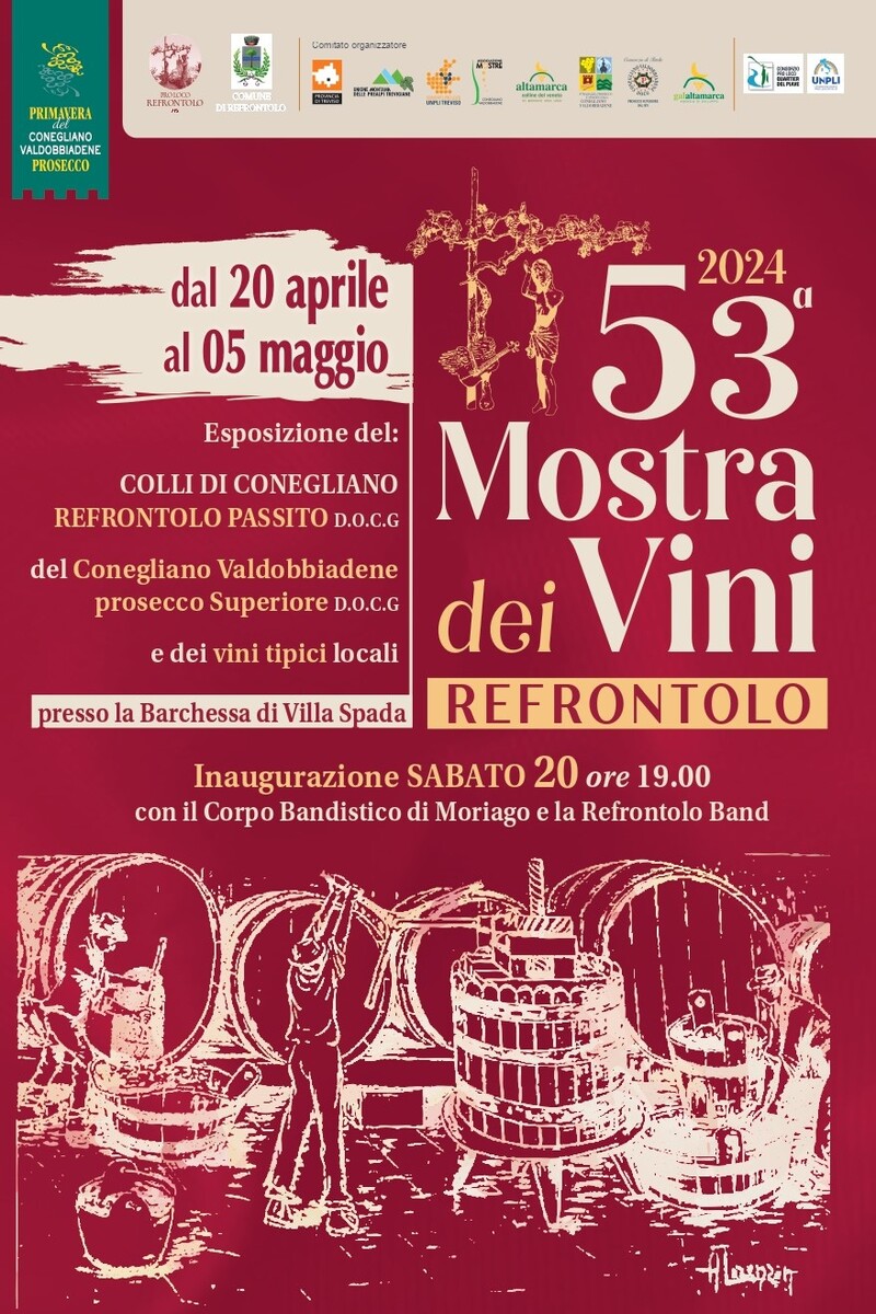 ore 19.00 Inaugurazione e apertura 52^ Mostra dei Vini con il Corpo Bandistico di Moriago e la Refrontolo Band. Seguirà rinfresco.