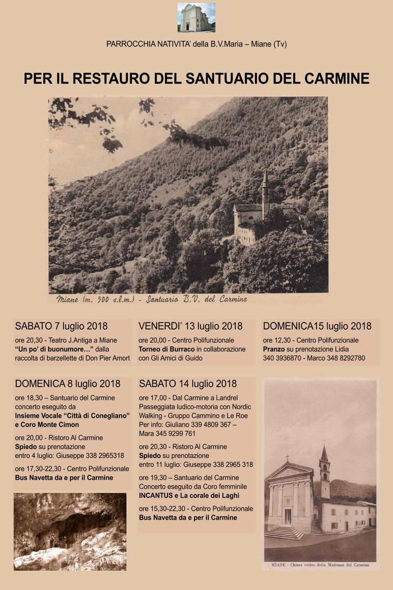 Il ricavato delle varie manifestazioni sarà devoluto per il restauro del Santuario del Carmine.
