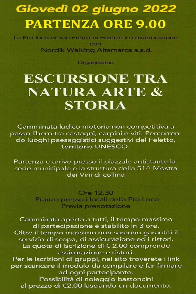 Camminata aperta a tutti, il tempo massimo di partecipazione è stabilio in 3 ore.